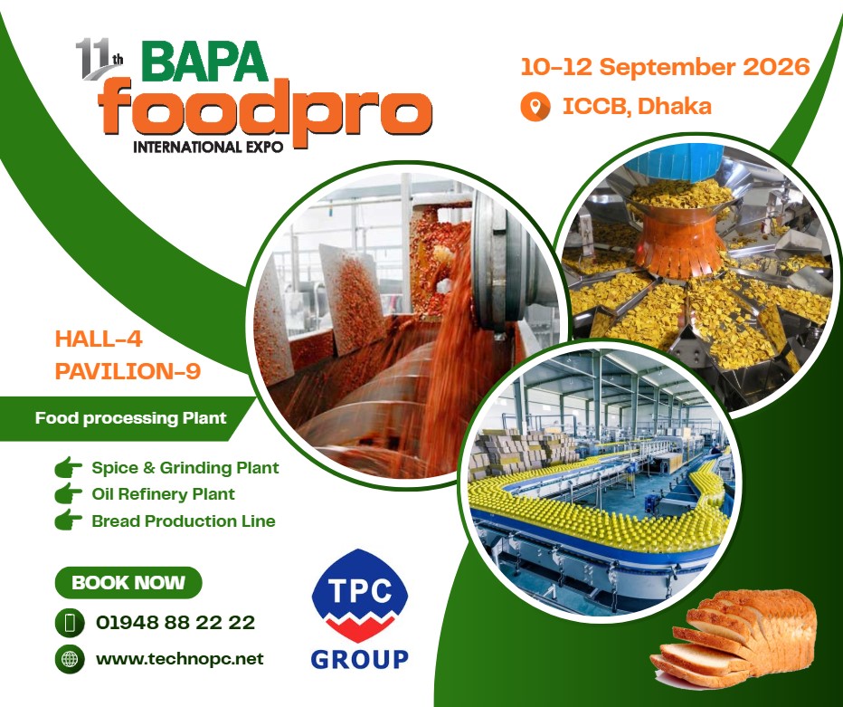 11th BAPA food pro International Expo will be held on 10-12 September, 2026 at International Convention City Bashundhara (ICCB), Dhaka, Bangladesh. All are cordially invited to visit our stall at ICCB, Dhaka. Hall No: 04, Pavilion: 09